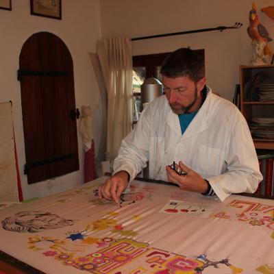 Vincent Loiseau donne des cours individuels de peinture sur soie dans son atelier au coeur du paradis terrestre sur une île de la Côte d'Azur. Il adapte le contenu en fonction du niveau des élèves et de leurs besoins.