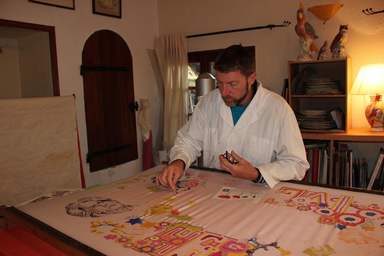Vincent Loiseau donne des cours individuels de peinture sur soie dans son atelier au coeur du paradis terrestre sur une île de la Côte d'Azur. Il adapte le contenu en fonction du niveau des élèves et de leurs besoins.